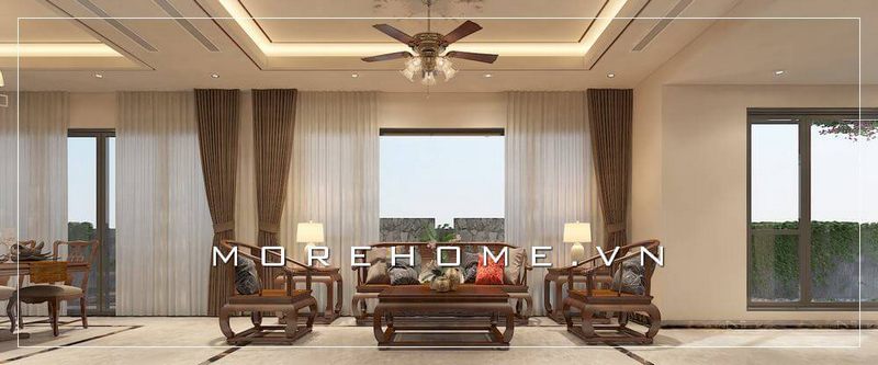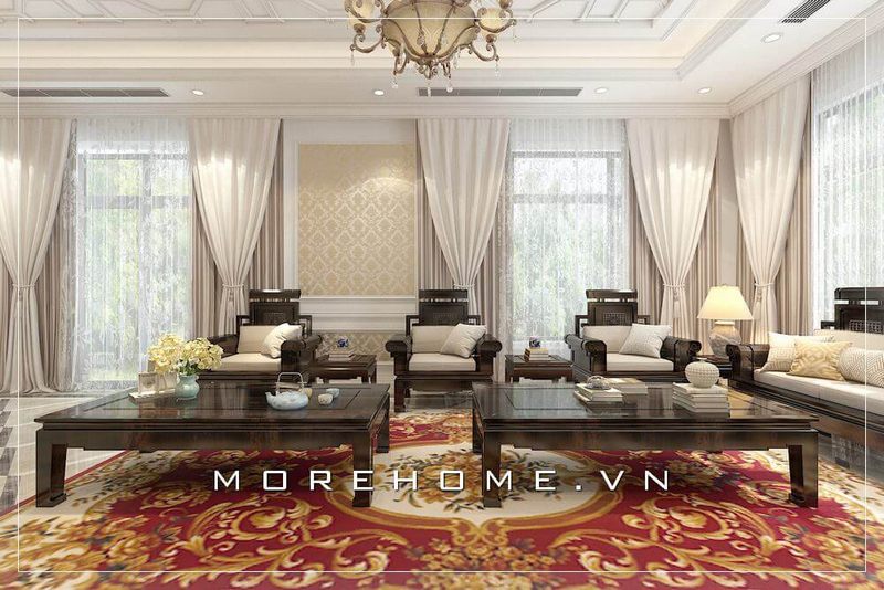 Ý tưởng sắp xếp phòng khách phong cách tân cổ điển sang trọng với nội thất gỗ tự nhiên cao cấp mang đến không gian tiếp khách đẳng cấp cho ngôi nhà