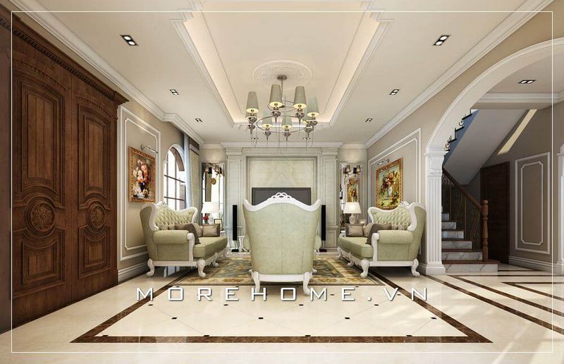 Mẫu thiết kế phòng khách biệt thự cao cấp nội thất tân cổ điển với đường nét tinh tế mang vẻ đẹp sang trọng đẳng cấp