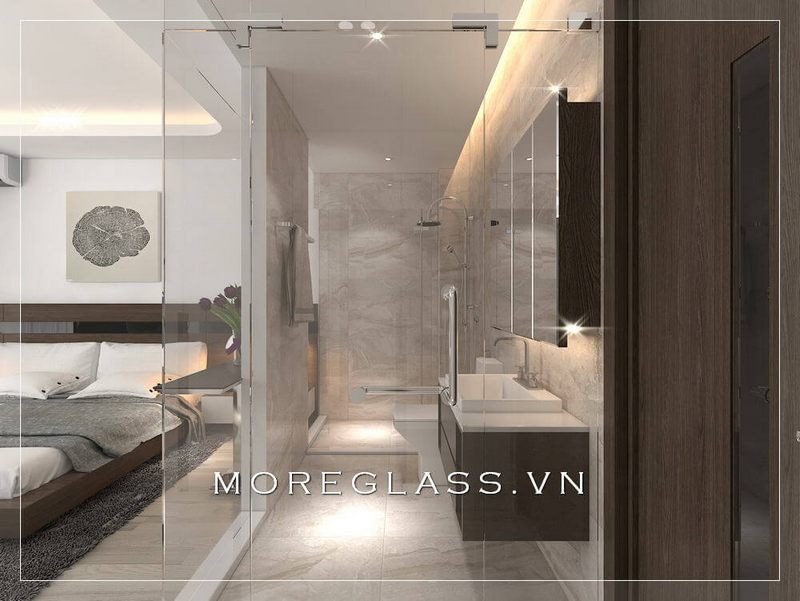 Không thể bỏ qua vách tắm kính nếu bạn muốn sở hữu một không gian phòng tắm sang trọng mang vẻ đẹp sang trọng, lôi cuốn.