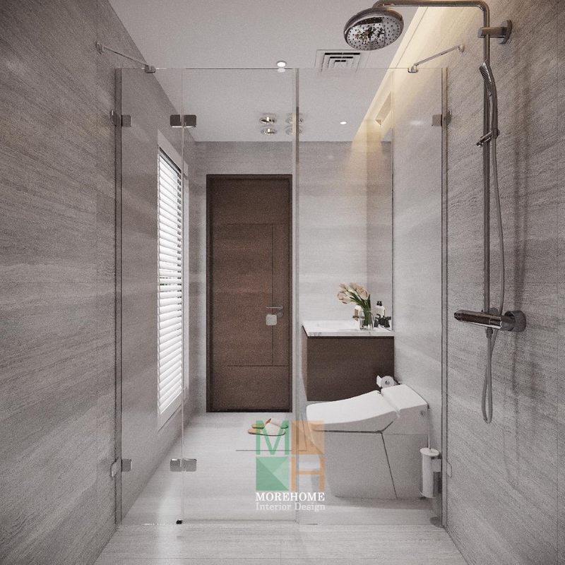 Phòng tắm chính của biệt thự, nhà phố, chung cư cao cấp thiết kế theo kiểu hiện đại, chia ngăn sạch sẽ bằng kính chắn cường lực cao cấp